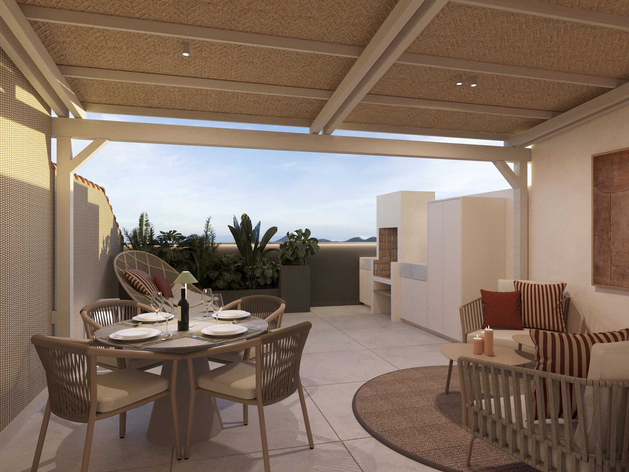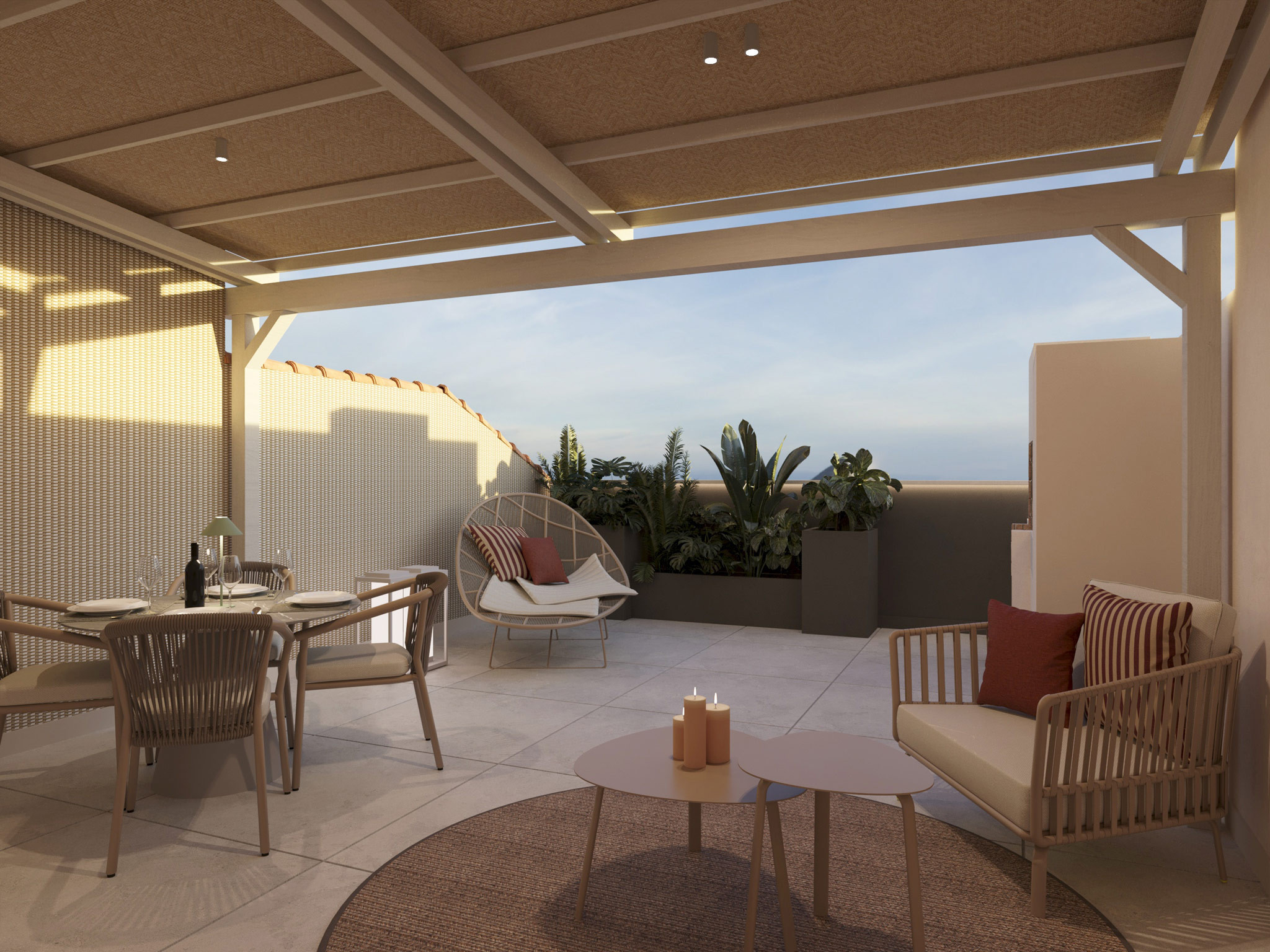 El resultado es una terraza contemporánea, donde cada detalle ha sido cuidadosamente pensado para ofrecer máximo confort y durabilidad al aire libre. La selección de materiales de alta calidad, el mobiliario con carácter y la iluminación ambiental permiten crear una atmósfera cálida, versátil y elegante, ideal tanto para momentos de descanso como para reuniones sociales.